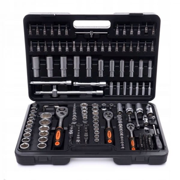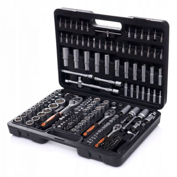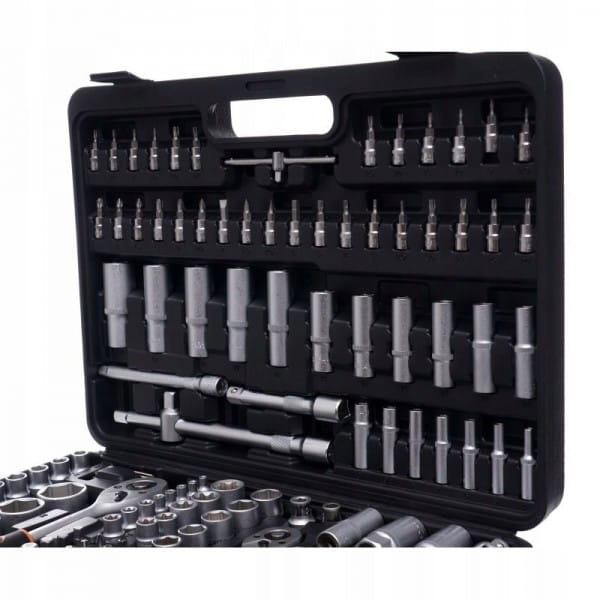 Cały zestaw składa się z 292 różnych elementów, które zapewnią odpowiedni dobór narzędzia do potrzeb. Narzędzia wykonane są z utwardzanej stali chromowo-wanadowej (CrV) przeznaczonej dla narzędzi warsztatowych. Chrom gwarantuje odporność stali na korozję, utlenianie, ścieranie i dużą wytrzymałość na wysokie temperatury. Dodatek wanadu hamuje wzrost ziaren podczas obróbki, zwiększając jednocześnie ciągliwość zarówno postaci hartowanej, jak i odpuszczonej.