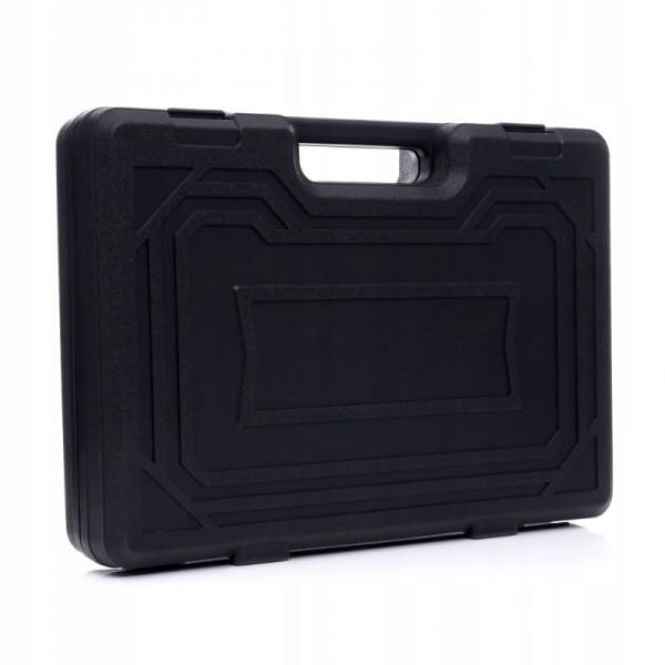 Walizka wykonana z trwałych tworzyw sztucznych pozwala na utrzymanie porządku i łatwe przenoszenie narzędzi. Każde narzędzie posiada swoje wyznaczone miejsce, w których łatwo znaleźć potrzebny rozmiar klucza.