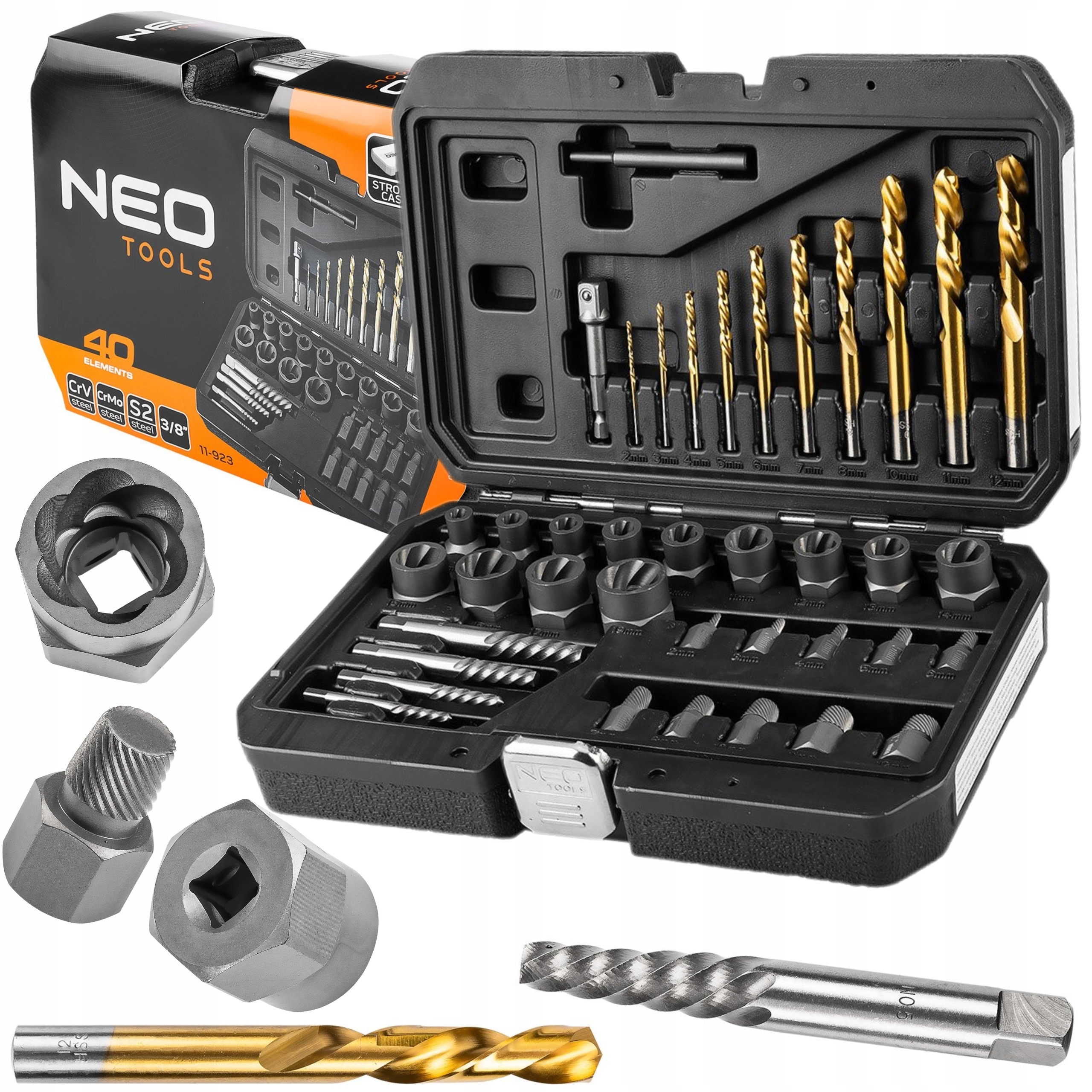 NEO ZESTAW DO USZKODZONYCH ŚRUB Z WIERTŁA + WYKRĘTAKI 40 ELEMENTÓW WALIZKA