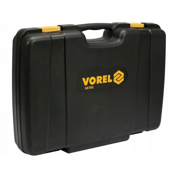 Zestaw narzędziowy VOREL składa się z 216 elementów umieszczonych w wygodnej walizce z tworzywa sztucznego.