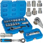 - Kompletny zestaw: Oprócz nasadek, w zestawie znajdują się adaptery do nasadek 1/2" oraz 3/8", a także przedłużka, która umożliwia dostęp do trudno dostępnych miejsc.