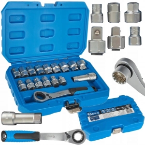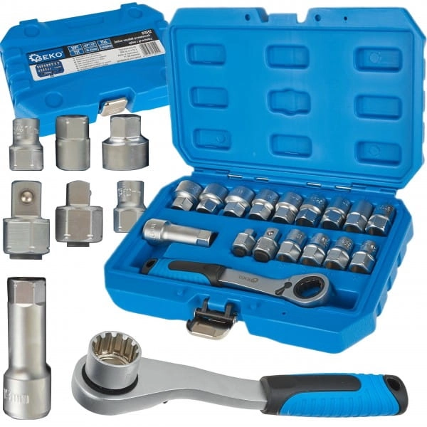 - Rozmiary nasadek: 10, 11, 12, 13, 14, 15, 16, 17, 18, 19, 21, 22, 24 mm