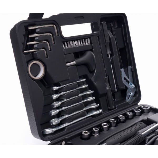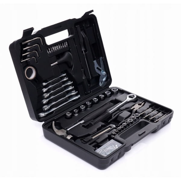 Cały zestaw składa się z 141 różnych elementów, które zapewnią odpowiedni dobór narzędzia do potrzeb. Narzędzia wykonane są z utwardzanej stali chromowo-wanadowej (CrV) przeznaczonej dla narzędzi warsztatowych. Chrom gwarantuje odporność stali na korozję, utlenianie, ścieranie i dużą wytrzymałość na wysokie temperatury. Dodatek wanadu hamuje wzrost ziaren podczas obróbki, zwiększając jednocześnie ciągliwość zarówno postaci hartowanej, jak i odpuszczonej.