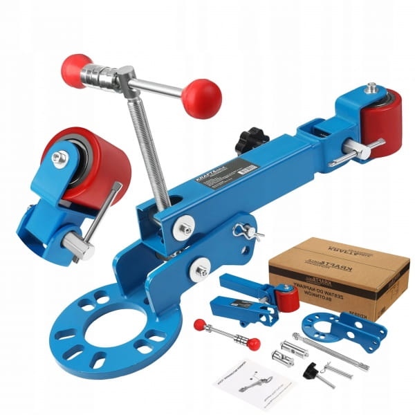 Dzięki regulacji nachylenia wałka oraz możliwości ustawienia dwóch poziomów nachylenia przy piaście, użytkownik może dopasować urządzenie do każdego rodzaju nadkola. Uniwersalne koło z mocowaniem na 4 lub 5 śrub, zabezpieczone końcówki drążka i rozsuwane ramię zwiększają funkcjonalność zestawu, czyniąc go niezastąpionym narzędziem w warsztacie samochodowym.
