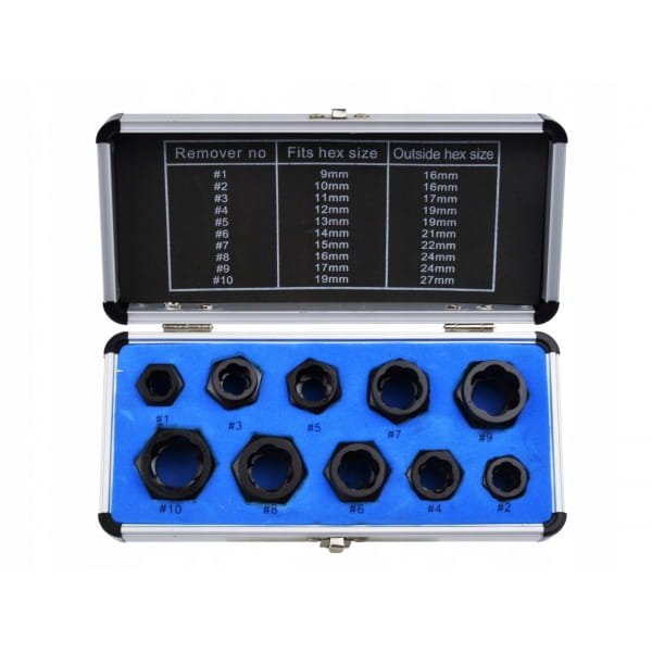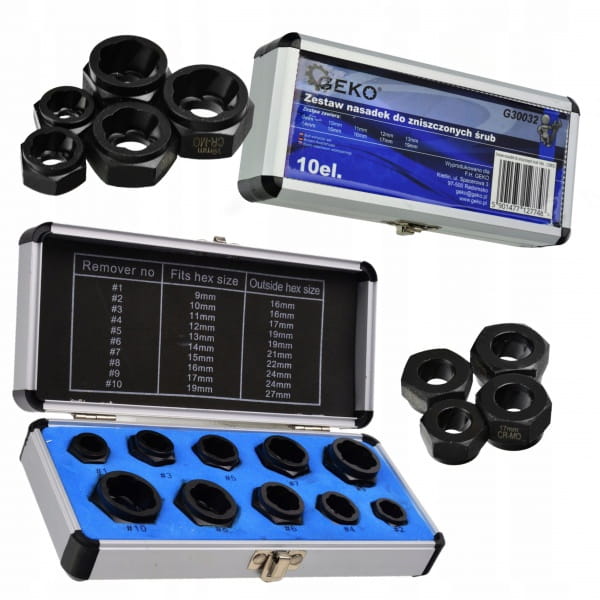 ✔️Zestaw do usuwania uszkodzonych nakrętek i śrub o rozmiarze 9 - 19 mm. Specjalny kształt nasadki ułatwiający zaklinowanie się jej na śrubie sprawia że odkręcenie uszkodzonej śruby nie będzie stanowiło problemu.
