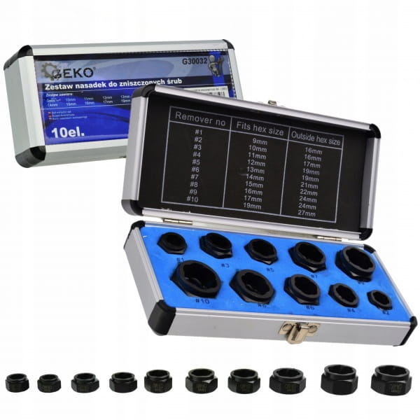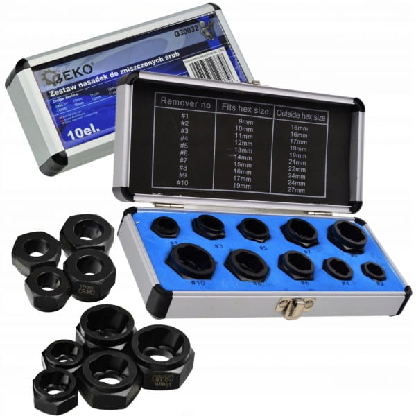 ZESTAW NASADEK DO ZNISZCZONYCH ŚRUB 10EL.NASADKI DO OBROBIONYCH ŁBÓW G30032