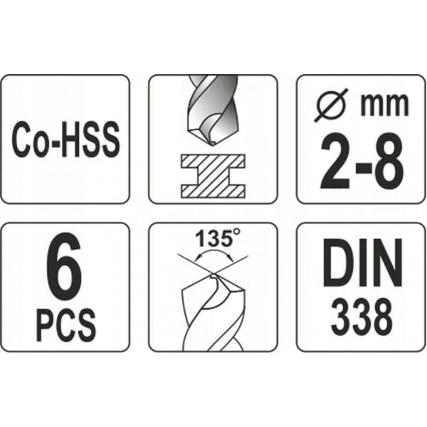 ZESTAW WIERTEŁ KOBALTOWYCH DO METALU 2-8MM YATO