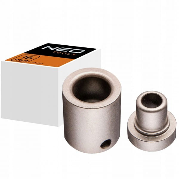 Tuleja grzewcza NEO (nr ref. 21-011) o średnicy 16 mm, do zgrzewania rur i mufek z tworzyw sztucznych PE, PP, PB. Przeznaczona do pracy ze zgrzewarką NEO i innymi dostępnymi na rynku. Tuleje pokryte powłoką PTFE zapobiegającą przywieraniu materiału do tulei. W ofercie NEO dostępne są śruby do tulei. Marka NEO spełnia oczekiwania profesjonalistów.
