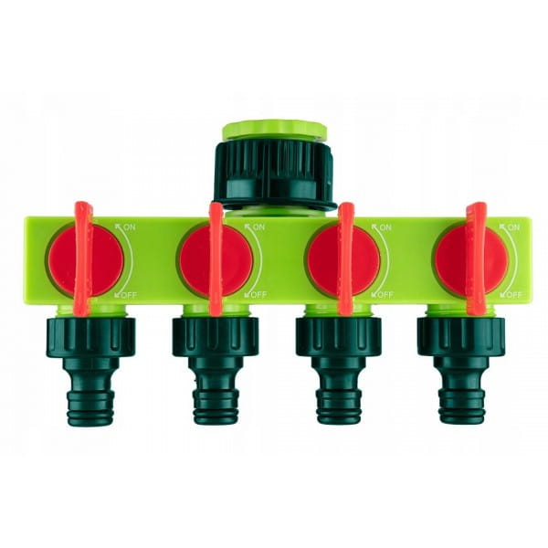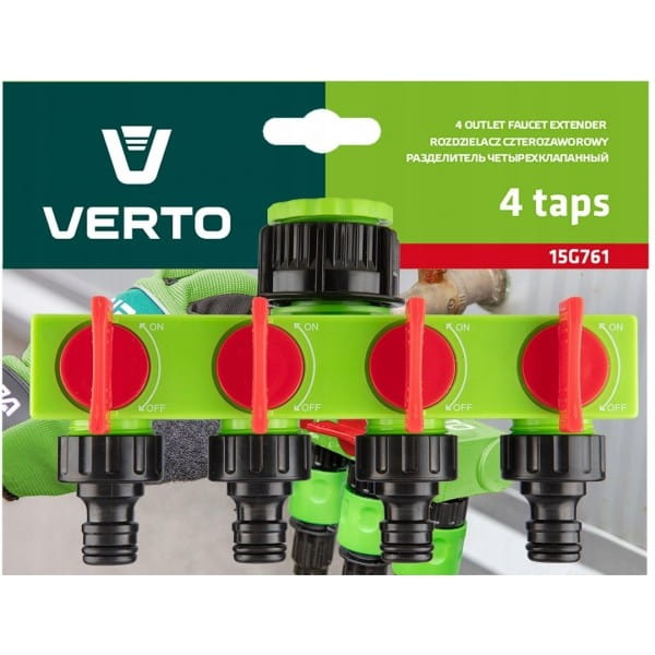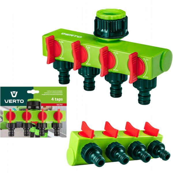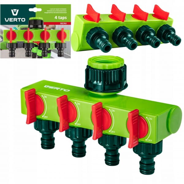 Rozdzielacz czterozaworowy 15G761 VERTO to praktyczne przyłącze wykonane z wysokiej jakości tworzywa sztucznego, które posiada cztery kanały nawadniające. Pozwala na jednoczesne podłączenie kilku węży do jednego kranu, ułatwiając tym samym pracę w ogrodzie i jednocześnie umożliwiając lepsze rozplanowanie systemu podlewania.