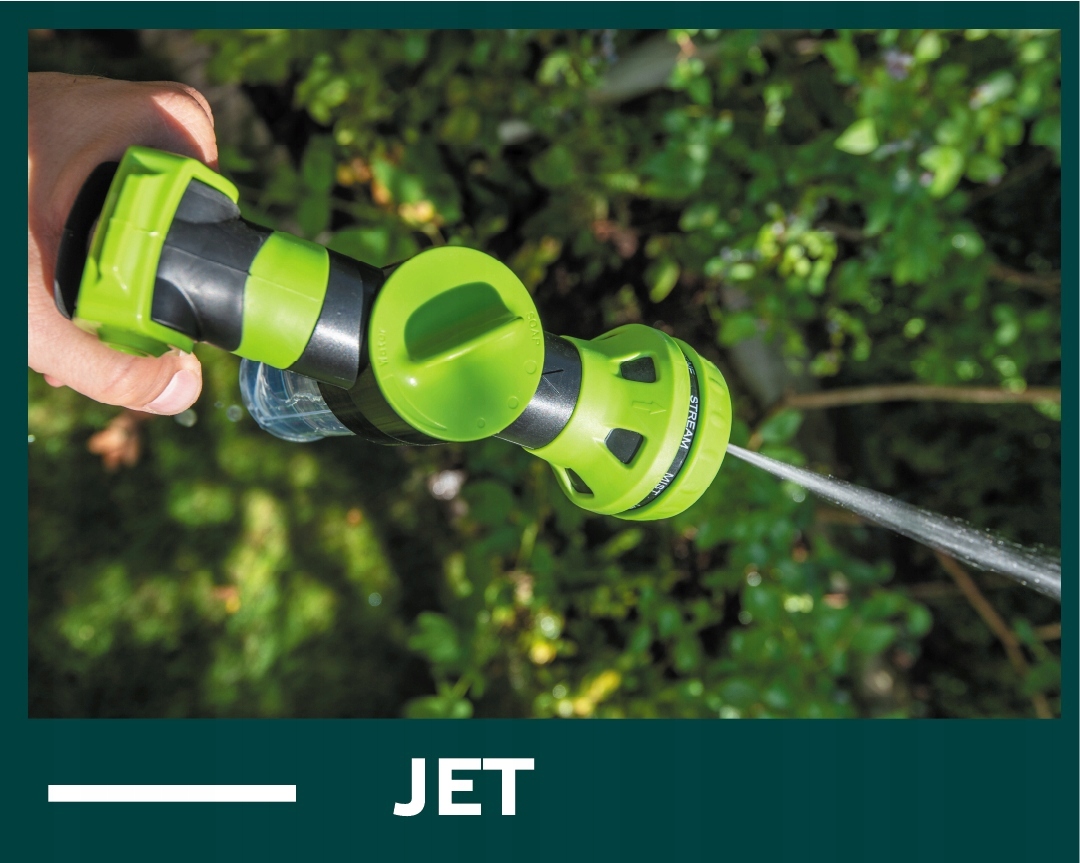 Zraszacz pistoletowy z pojemnikiem, opryskiwacz piany 15G715 marki VERTO to narzędzie z wbudowanym pojemnikiem oraz opryskiwaczem piany, wyposażone w 8-funkcyjną, płynną regulację strumienia. Sterowanie za pomocą kciuka, umożliwia szybki wybór rodzaju strumienia, jego siły i funkcjonalności. Czytelne oznakowanie na zraszaczu ułatwia wybranie odpowiedniego programu i jego dobór do aktualnych potrzeb. Narzędzie posiada dwumateriałowy, ergonomiczny uchwyt, umożliwiający długotrwałą pracę. Zraszacz pistoletowy polecany jest do nawadniania, ale również czyszczenia mebli ogrodowych czy mycia samochodu. Jego uniwersalne zastosowania sprawdzą się zarówno w profesjonalnym jak i przydomowym środowisku.