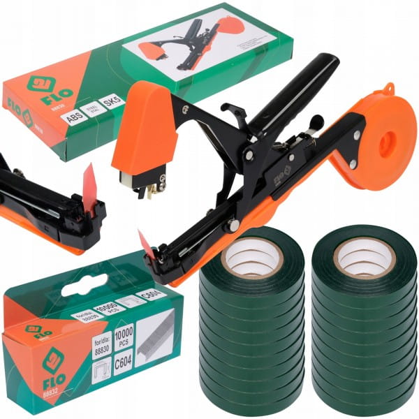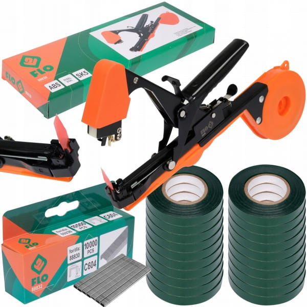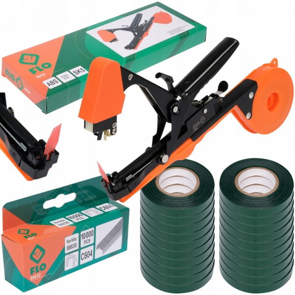 Zszywacz ogrodniczy FLO + zszywki + taśmy.