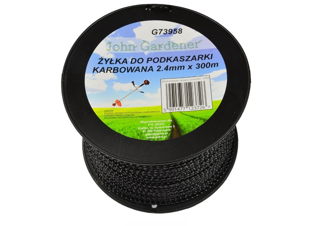 Żyłka tnąca przeznaczona do kos spalinowych i podkaszarek elektrycznych. Żyłka karbowana o przekroju kwadratu, średnicy 2,4mm i długości 300m wykonana została z wysoce wytrzymałego tworzywa sztucznego.